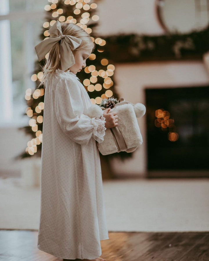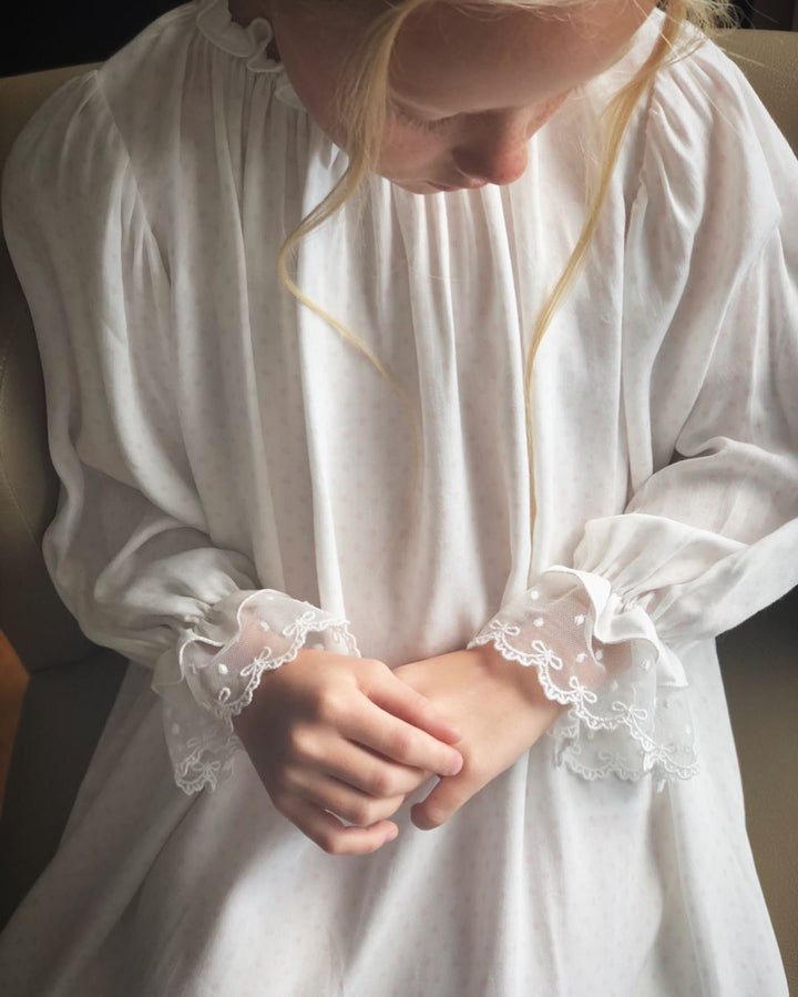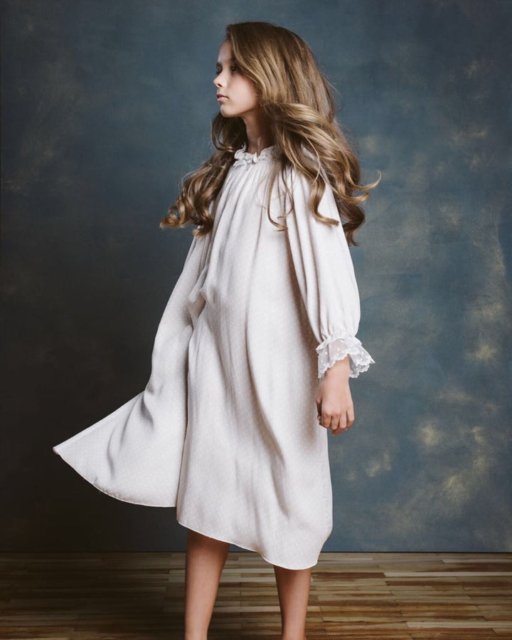 Children Clothing Home Clothes Girls' Polka Dot Lace Lace Nightdress