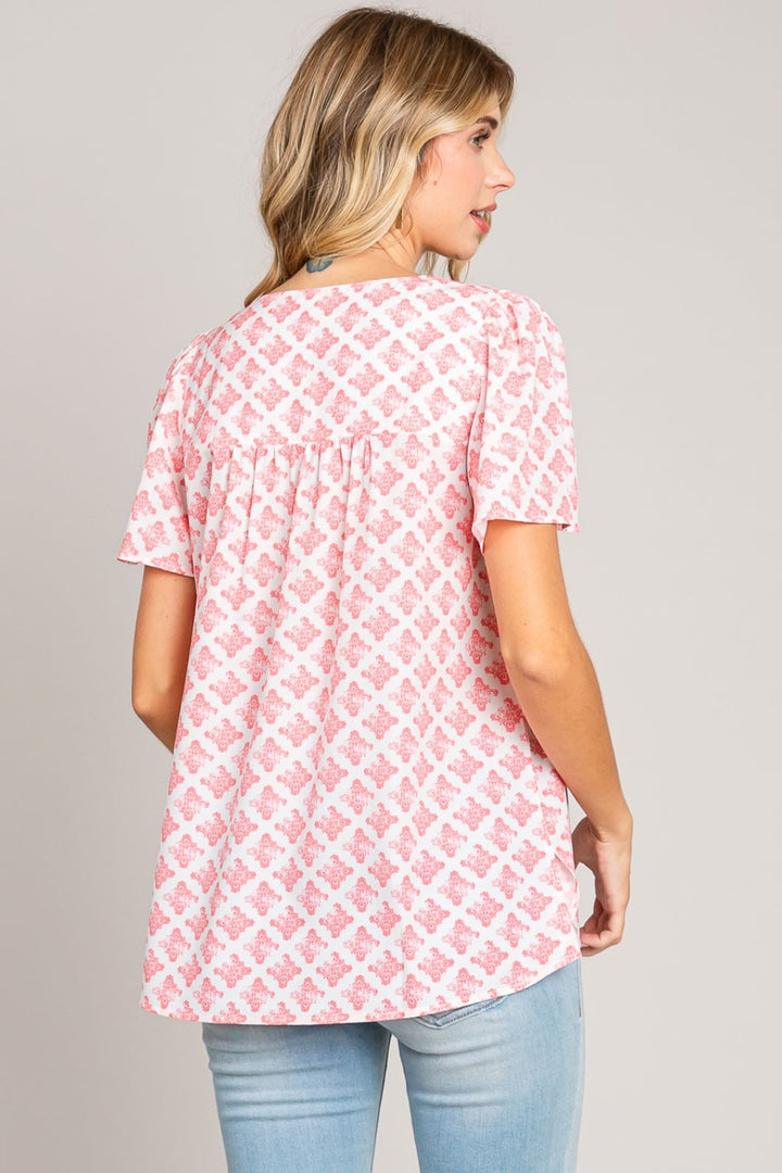 Le chemisier à manches flottantes et col en V à imprimé fendu est une pièce captivante et féminine qui allie sans effort style et sophistication. Avec son charmant motif imprimé et ses délicates manches flottantes, ce chemisier dégage un sentiment d'élégance et de grâce. L'encolure en V séduisante et le détail subtil de la fente ajoutent une touche d'allure à la silhouette classique, la rendant parfaite pour les occasions décontractées et plus habillées. Qu'il soit associé à un pantalon pour un look professionnel ou à un jean pour un ensemble plus décontracté, ce chemisier offre polyvalence et charme. Rehaussez votre tenue avec le chemisier à manches flottantes et col en V à imprimé fendu, une pièce chic et polyvalente qui fera sûrement sensation dans n'importe quel contexte.