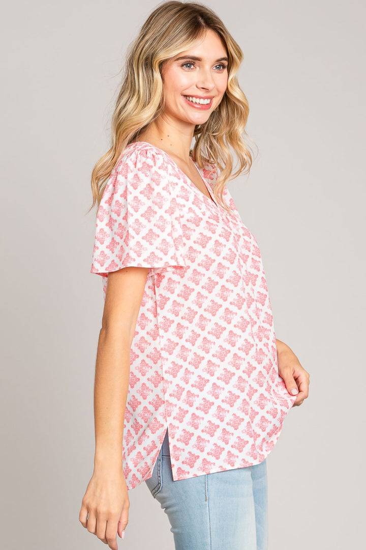 Chemisier à manches flottantes et col en V à imprimé fendu Cotton Bleu by Nu Lab