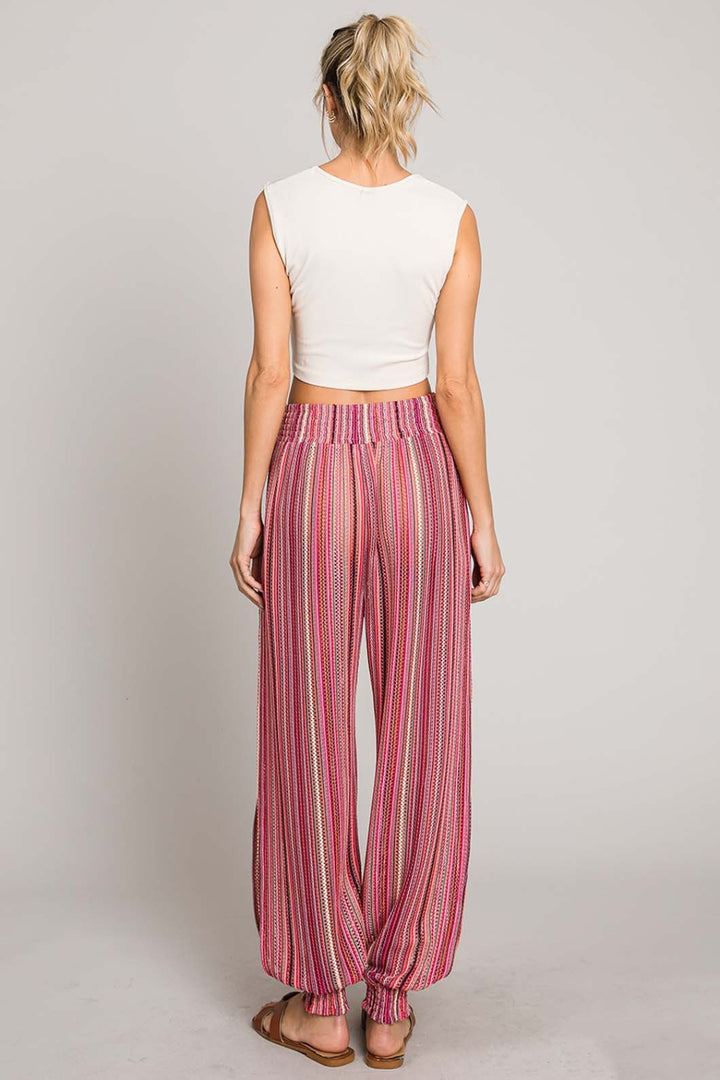 Le pantalon de plage rayé à smocks est un choix chic et polyvalent pour se détendre à la plage ou au bord de la piscine, avec un motif rayé tendance et une taille smockée confortable. Ce pantalon élégant offre une coupe décontractée et aérée, parfaite pour enfiler par-dessus un maillot de bain pour un look de plage tendance. La taille smockée offre une silhouette flatteuse et assure une coupe confortable et ajustable. Le motif rayé ajoute une touche d'élégance nautique, tandis que le tissu léger le rend idéal par temps chaud. Rehaussez votre tenue de villégiature avec le pantalon de plage rayé à smocks qui allie confort, style et ambiance de plage. Adoptez l'élégance décontractée avec ce pantalon polyvalent qui passe sans effort de la plage à un café en bord de mer.