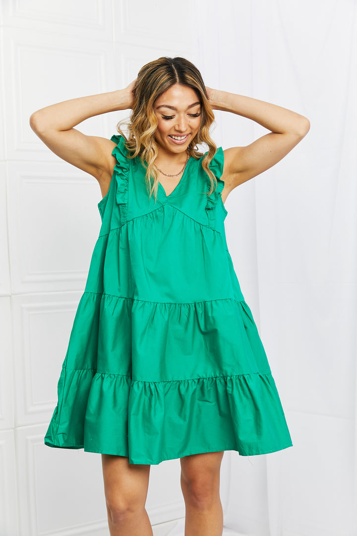 Cette adorable robe est parfaite pour toutes les occasions printemps/été ! Les volants sur toute la longueur de la robe la rendent très féminine et délicate. Vous pouvez l'associer à des baskets pour un look décontracté et à des bottes ou des talons pour une tenue plus élégante.