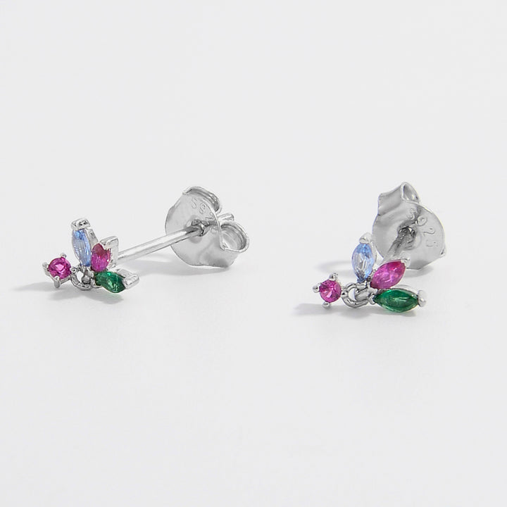 Boucles d'oreilles à tige géométriques en argent sterling 925 avec zircons incrustés