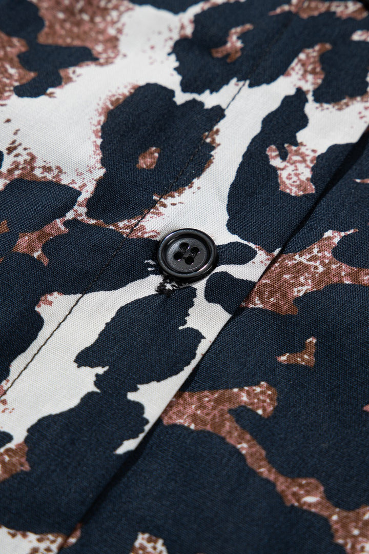 Mini-robe léopard boutonnée à manches mi-longues