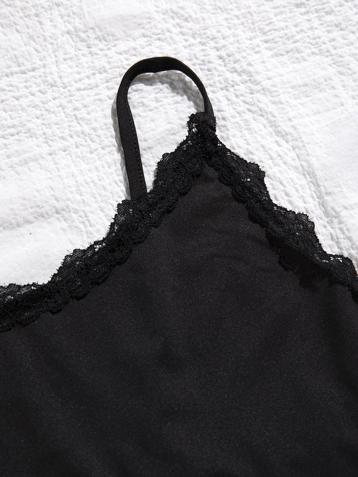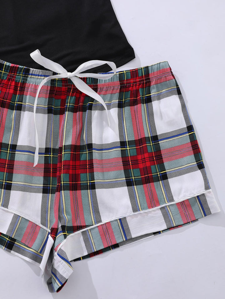 Ensemble pyjama grande taille avec camisole à col rond et short imprimé en dentelle