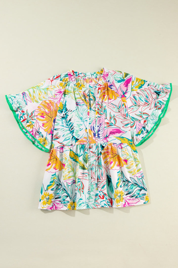 Chemisier imprimé à volants et col noué