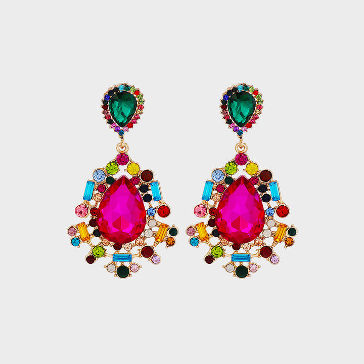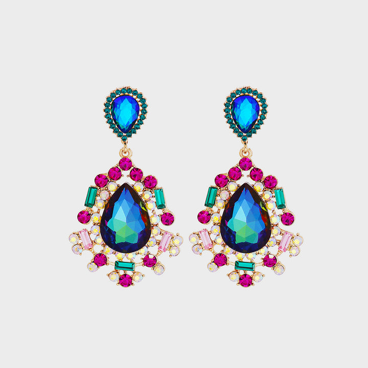 Boucles d'oreilles pendantes en alliage avec strass en forme de larme