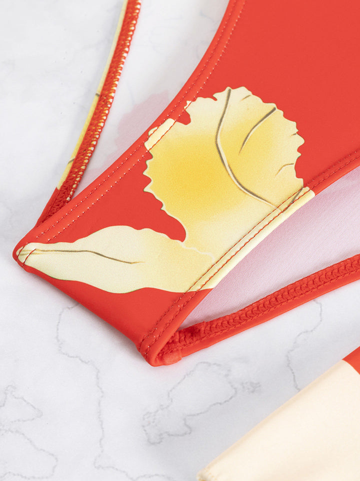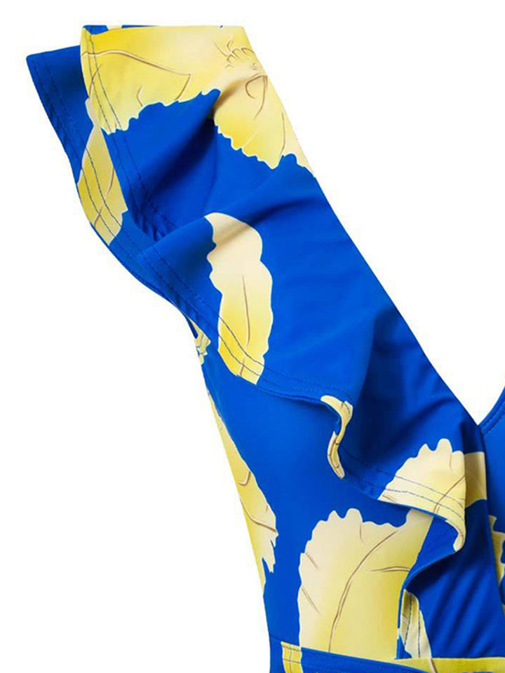 Maillot de bain une pièce sans manches à col en V et imprimé noué