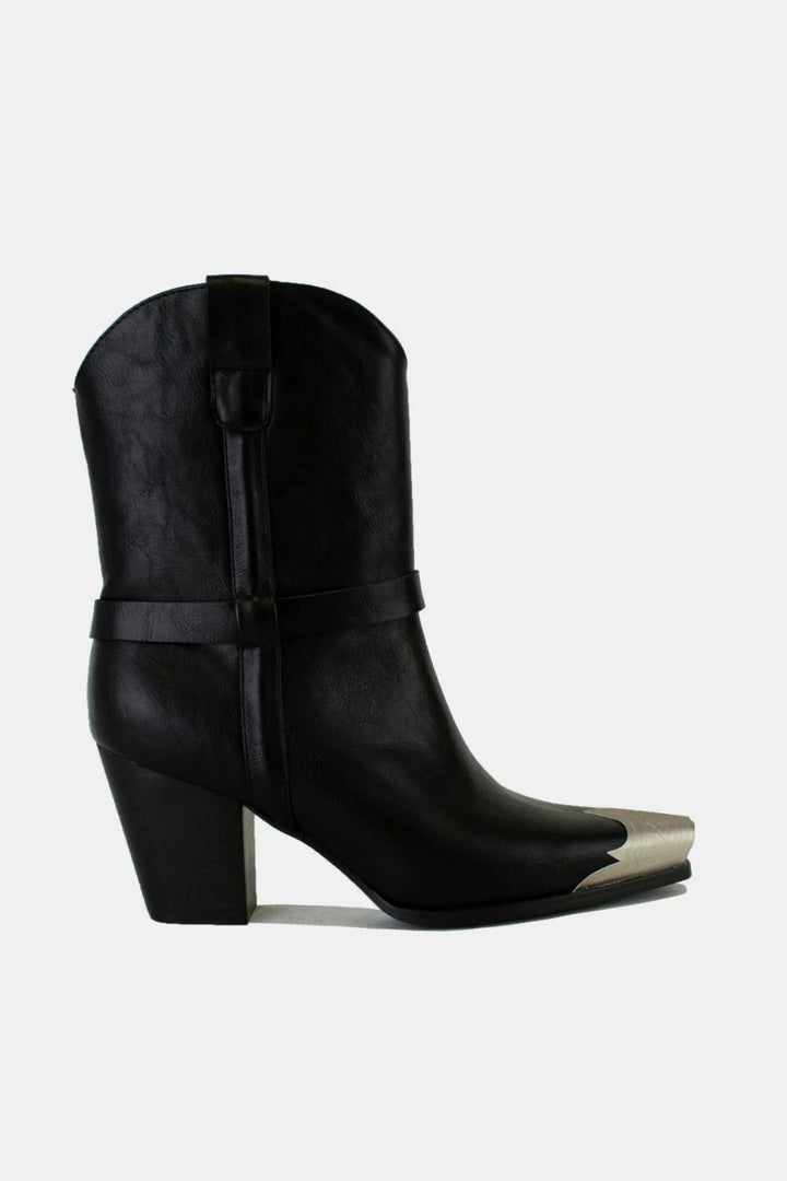 The boots bring a modern edge to the classic western style with a striking metal toe detail. Designed for those who love a bold look, these boots feature a sleek silhouette and comfortable block heels, perfect for making a statement.