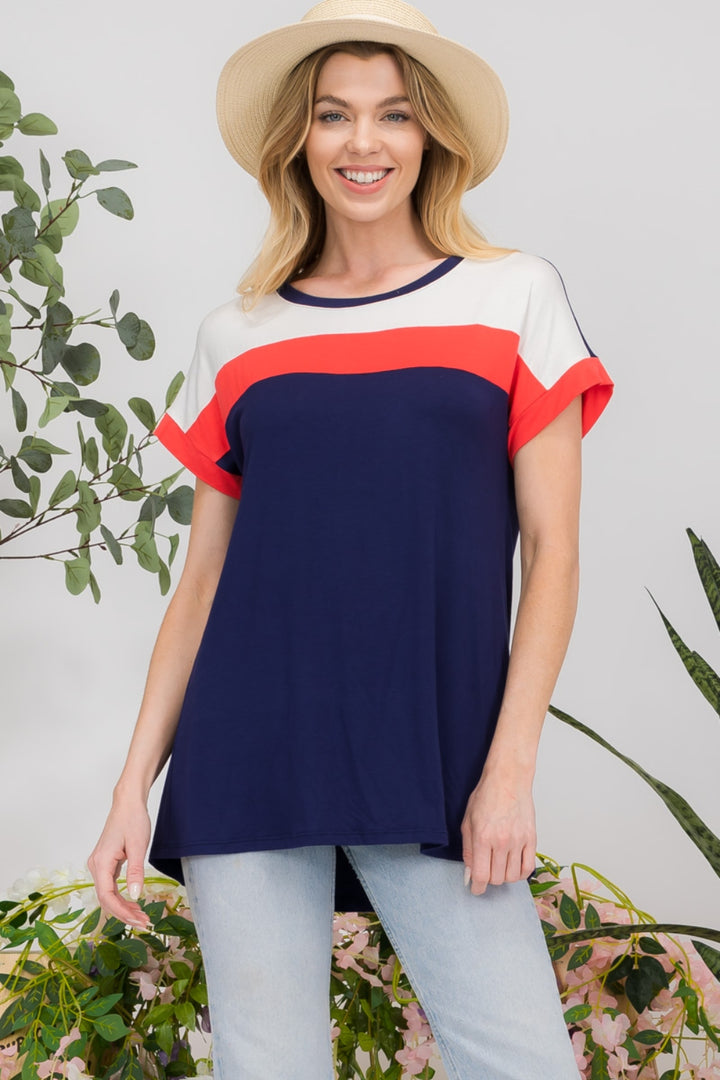 The Color Block Round Neck Short Sleeve T-Shirt is a trendy and versatile piece that adds a playful touch to your casual wardrobe. Featuring a stylish color block design, this t-shirt offers a fun and modern twist on a classic silhouette. The round neckline and short sleeves provide a comfortable and easy fit for everyday wear. Whether paired with jeans for a laid-back look or with a skirt for a more fashion-forward ensemble, this t-shirt allows you to express your personality and style effortlessly. Stand out with confidence in this chic and vibrant Color Block Round Neck Short Sleeve T-Shirt that is sure to make a statement wherever you go.