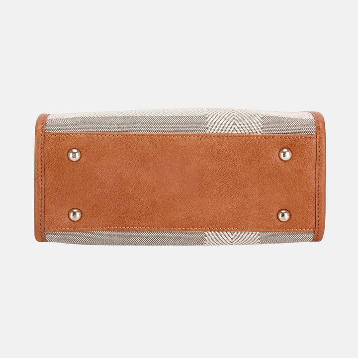 This Striped Contrast Tote Bag is a chic and eye-catching accessory for your everyday needs. The striped design adds a touch of sophistication and style. With contrasting colors, it offers a bold and dynamic look. The spacious interior is perfect for carrying your essentials in an organized manner. The sturdy tote handles ensure comfortable carrying, while the durable material promises long-lasting use. Elevate your outfit with this trendy and practical tote bag that is ideal for work, shopping, or casual outings.
