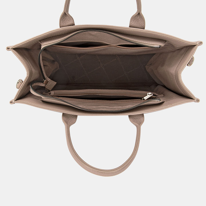 The Textured PU Leather Handbag is a stylish and sophisticated accessory that adds a touch of elegance to any outfit. Crafted from high-quality PU leather with a textured finish, this handbag exudes a luxurious look and feel. With its spacious interior and organized compartments, it offers functionality without compromising on style. The timeless design and versatile appeal make the Textured PU Leather Handbag a perfect choice for both casual and formal occasions. Elevate your ensemble with this chic and trendy handbag that is sure to make a statement.