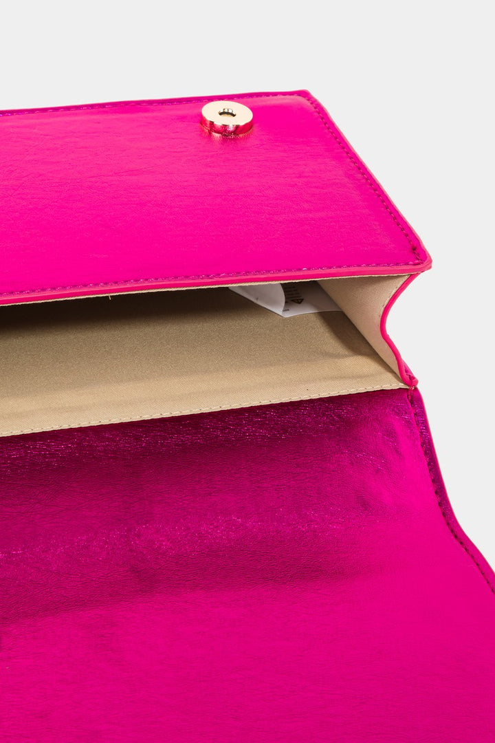 Add some edge to your wardrobe, this bag adds a distinctive rhinestone studded rectangle design. Perfect for adding a touch of glamour and sophistication to any outfit, this accessory is a must-have.