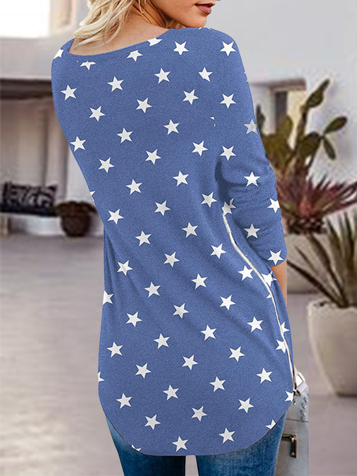 Full Size Side Zip Printed V-Neck Long Sleeve T-Shirt