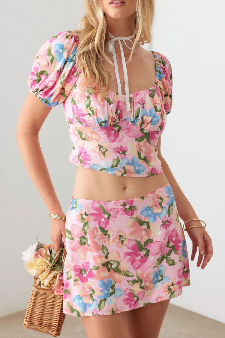 The Floral Puff Sleeve Crop Top and Mini Skirt Set is a charming and feminine ensemble that is perfect for a variety of occasions. The floral print adds a whimsical and playful touch to the outfit, while the puff sleeves on the crop top create a romantic and vintage-inspired look. The matching mini skirt complements the top perfectly, creating a coordinated and stylish outfit. Whether worn together as a set or mixed and matched with other pieces in your wardrobe, this set offers versatility and versatility. Perfect for brunch dates, picnics, or garden parties, this set will have you looking effortlessly chic and on-trend. Embrace your girly side with the lovely Floral Puff Sleeve Crop Top and Mini Skirt Set!