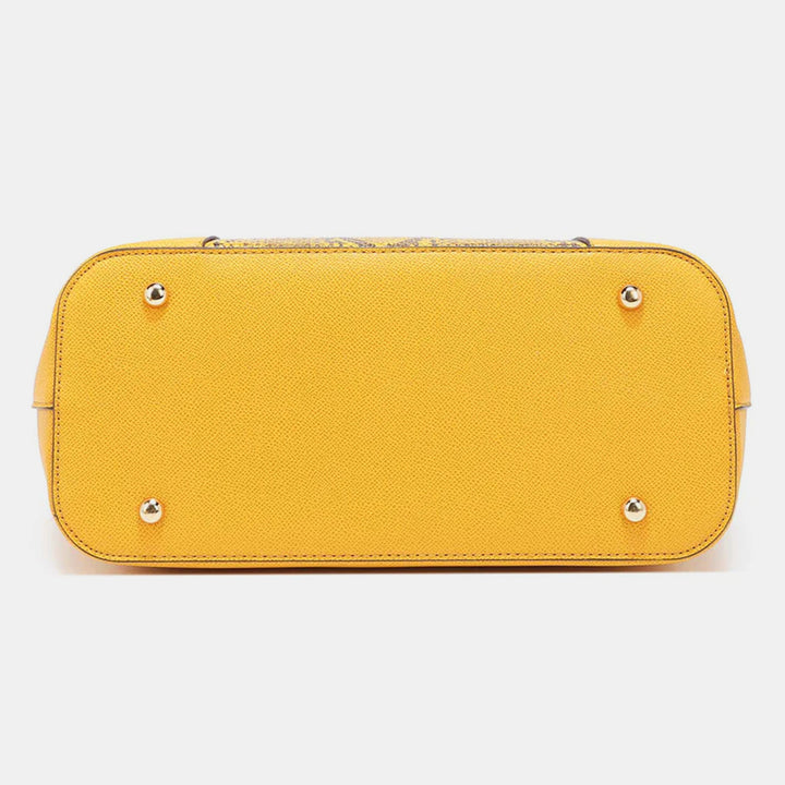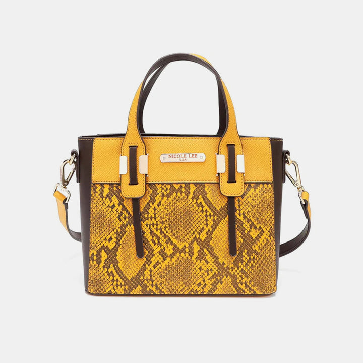 The 3-piece Snake Print Handbag Set features a versatile trio of bags, including a tote, crossbody, and clutch, each adorned with a trendy snake print design. This set offers a seamless and coordinated collection that provides options for various occasions. Crafted from high-quality materials, these bags are not only stylish but also durable for everyday use. Whether you're heading to the office, running errands, or going out for the night, this set has you covered with chic and fashionable choices. Elevate your accessory game with this sophisticated and practical 3-piece Snake Print Handbag Set.