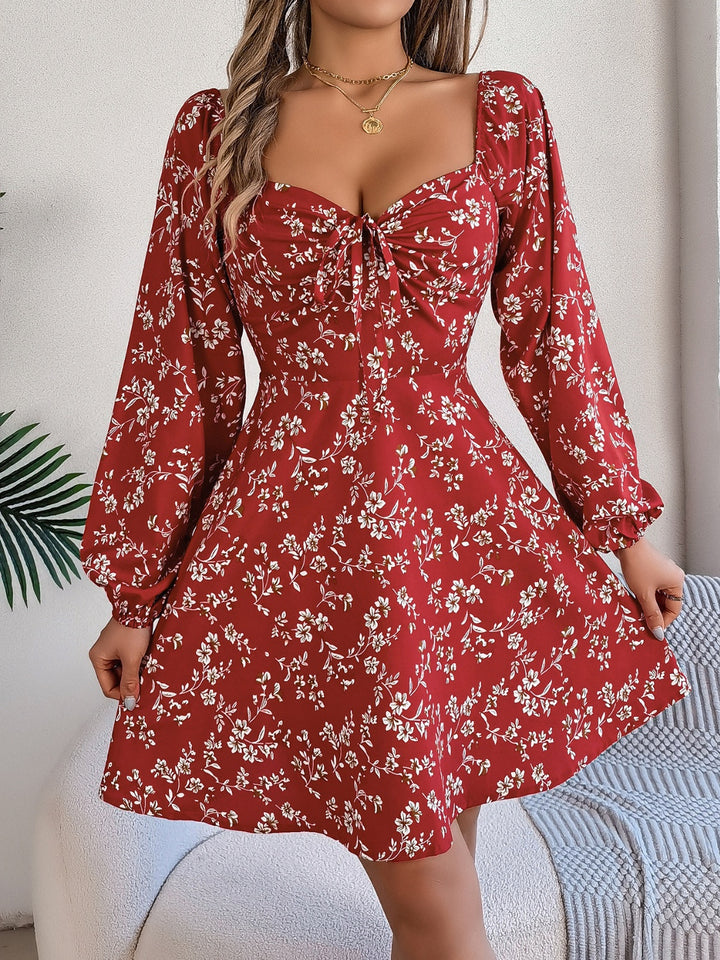 Printed Sweetheart Neck Balloon Sleeve Mini Dress