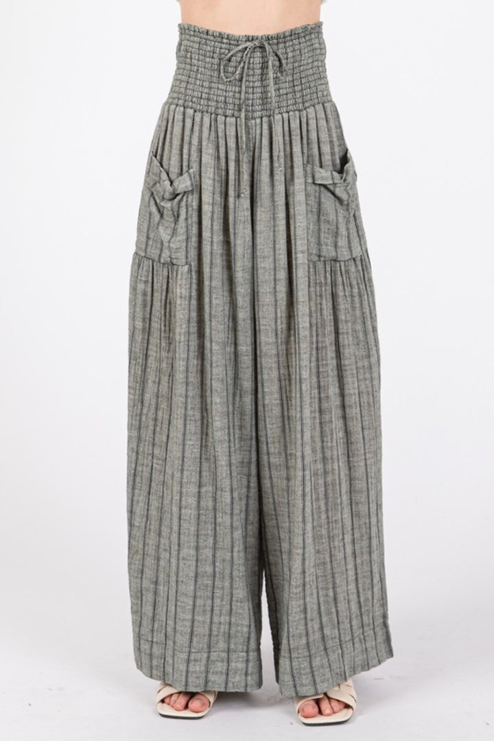 The Cotton Gauze Wash Stripe Pants are a comfortable and stylish choice for a casual and laid-back look. These pants feature a breathable cotton gauze fabric with a washed stripe pattern, adding a touch of texture and interest to your outfit. Perfect for warm weather or relaxed days, these pants offer a relaxed fit and a breathable feel for all-day comfort. Whether you're running errands or lounging at home, the Cotton Gauze Wash Stripe Pants are versatile and easy to style. Pair them with a simple tee or tank top for an effortless and carefree ensemble that exudes a relaxed and chic vibe.