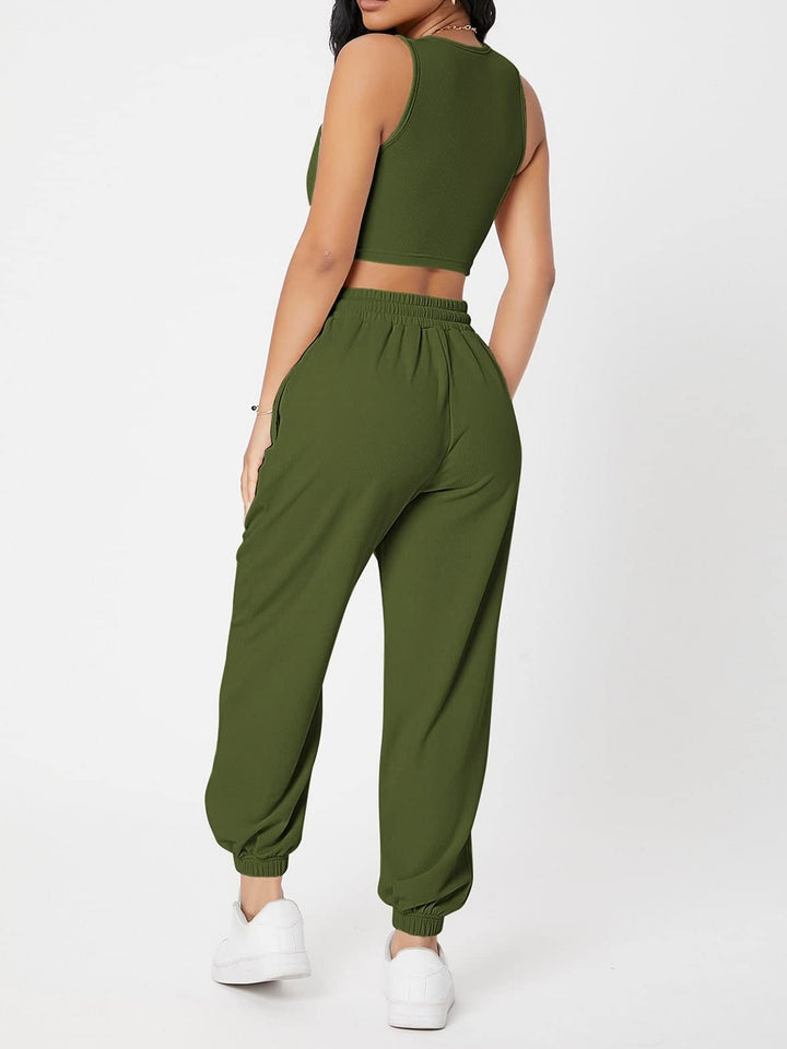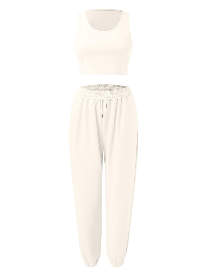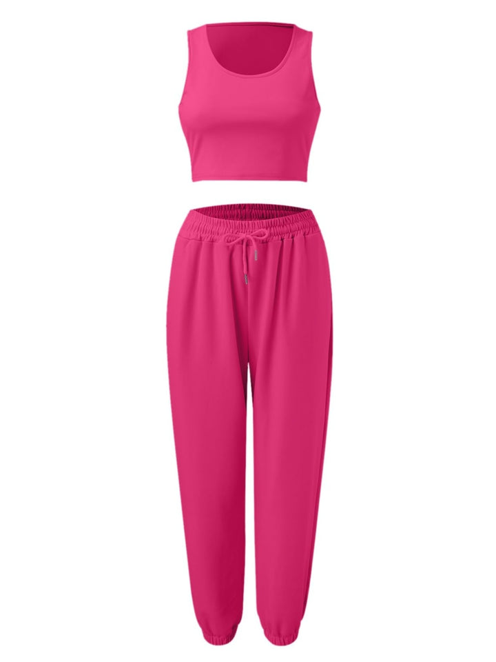 Wide Strap Top and Drawstring Joggers Set